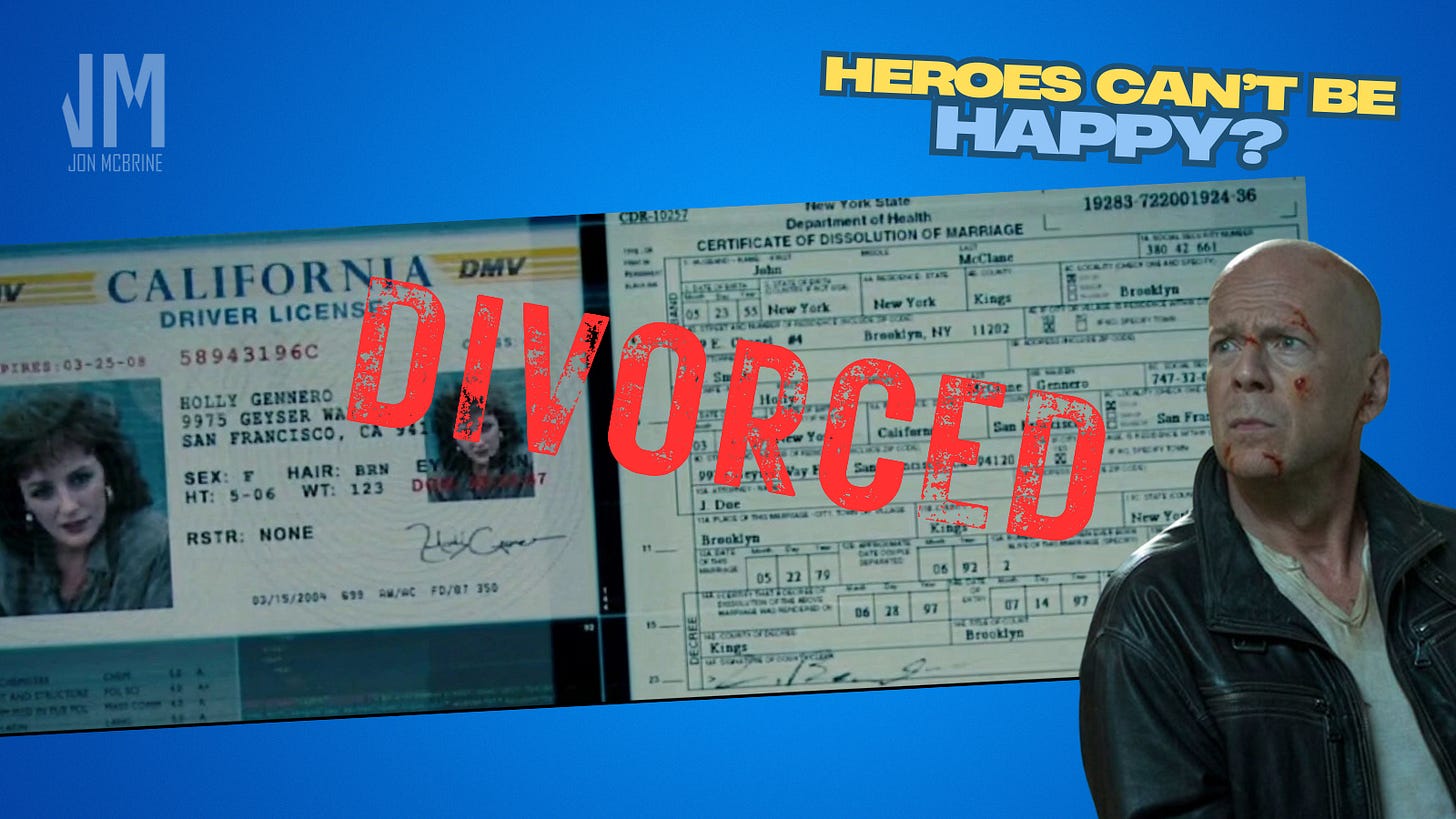 John McClane is known for battling terrorists, not talking out his feelings. Still, it was nice to assume that the fateful phone call at the end of “…With A Vengeance” would’ve smoothed things over with Holly Gennaro. Instead we lived with some not-so-good days.