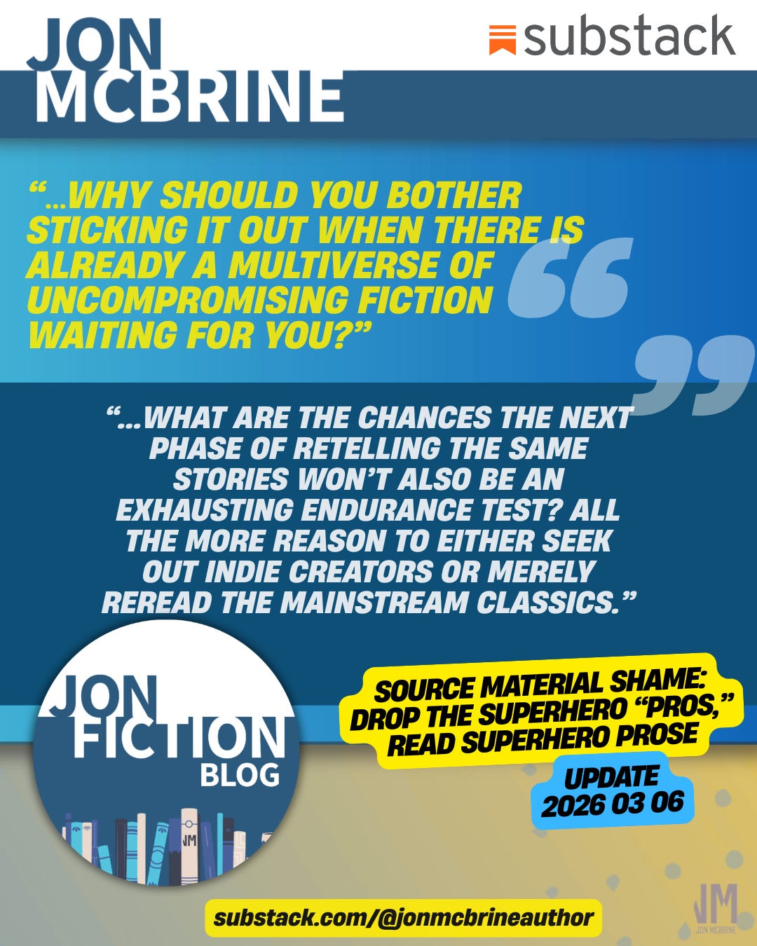 Stay in the loop for more details by subscribing to my Substack and be sure to check out jonmcbrine.com for more info about this and my books.