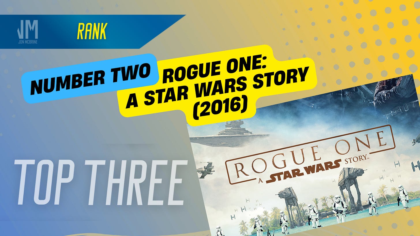 Number Two: Rogue One: A Star Wars Story. I like alliteration as much as the next guy, but this made the film sound silly. No matter what your opinion of the 2016 spinoff-film is, referring to it as “a” Star Wars story made it sound less important. 2018’s “Solo” reused the subtitle and after that prequel tanked, Star Wars stories stuck with streaming series for a long while.